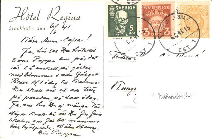 old postcard Stockholm Hotel Regina postalisch gelaufen Erhaltung siehe scans