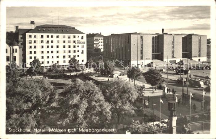 old postcard Stockholm Hotell Mamen och Medborgarhuset postalisch gelaufen Erhaltung siehe scans