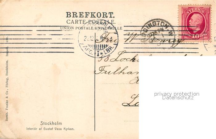 old postcard Stockholm Interioer af Gustaf Vasa Kyrkan Kirche postalisch gelaufen Erhaltung siehe scans [FriedD77]