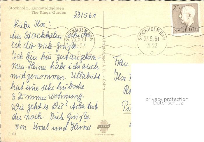 old postcard Stockholm Kings Garden Fliegeraufnahme postalisch gelaufen Erhaltung siehe scans