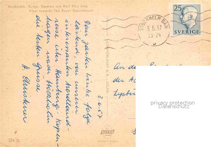 old postcard Stockholm Kungl Operan och Karl XII torg Royal Operahouse postalisch gelaufen Erhaltung siehe scans [FriedD77]