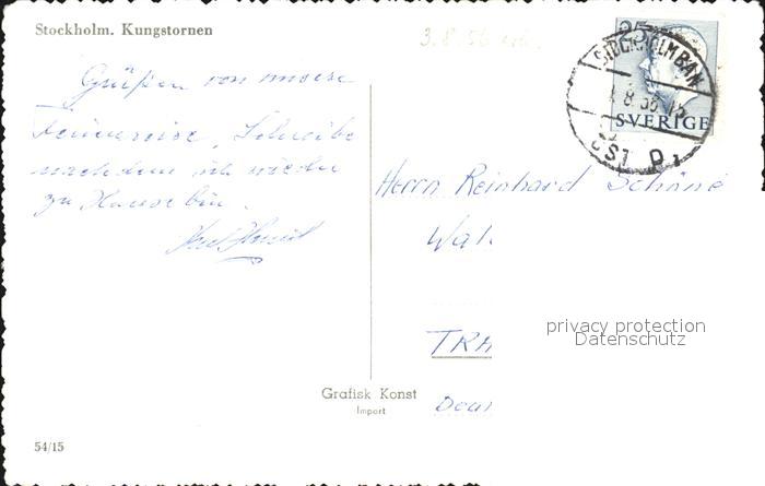 old postcard Stockholm Kungstornen postalisch gelaufen Erhaltung siehe scans
