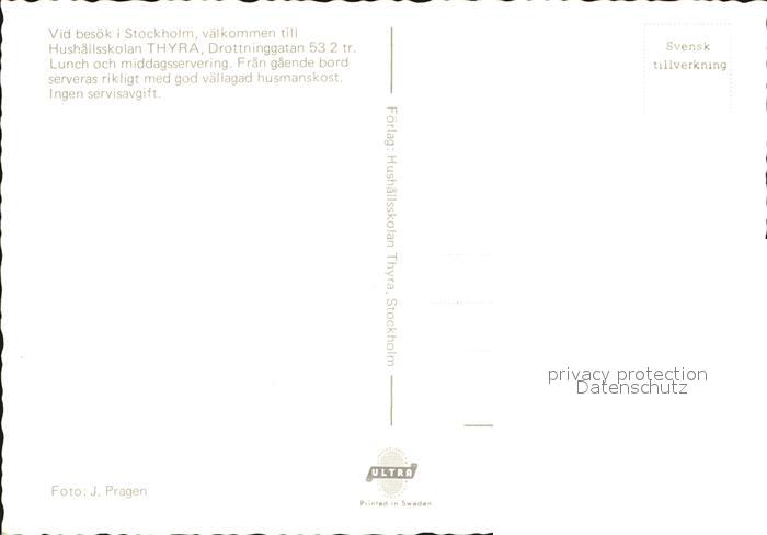 Stockholm Mitt i city Hushallsskolan Thyra Restaurant postalisch nicht gelaufen Erhaltung siehe scans
