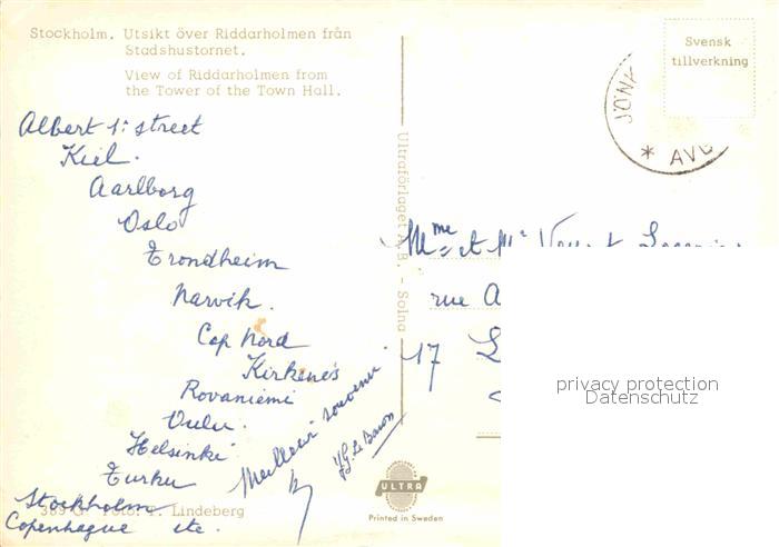 old postcard Stockholm Riddarholmen Tower Town Hall postalisch gelaufen Erhaltung siehe scans [KathaD81]