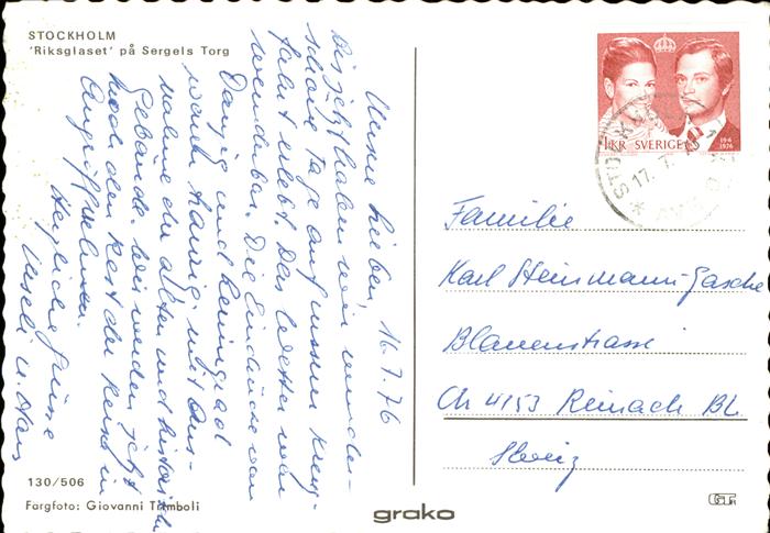 old postcard Stockholm Riksglaset pa Sergels Torg postalisch gelaufen Erhaltung siehe scans