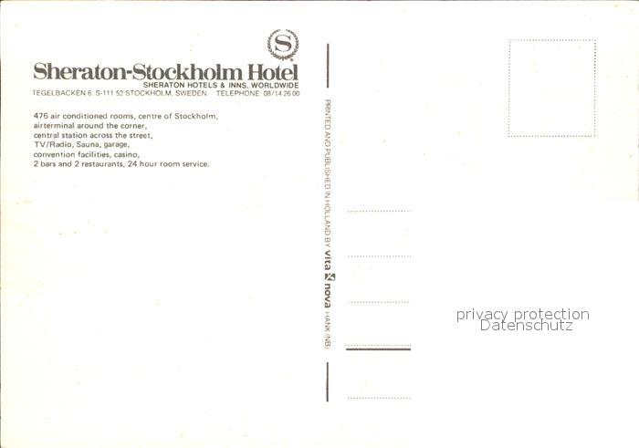 Stockholm Sheraton Hotel postalisch nicht gelaufen Erhaltung siehe scans [AndreD76]