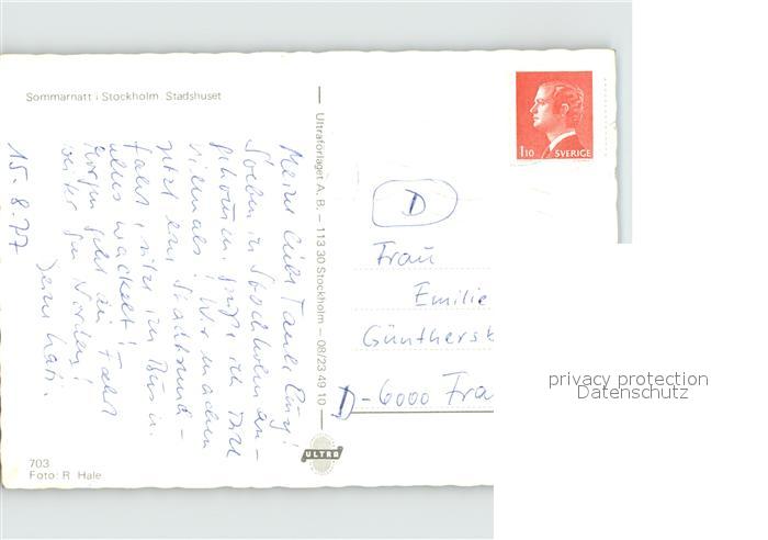 old postcard Stockholm Stadshuset postalisch gelaufen Erhaltung siehe scans