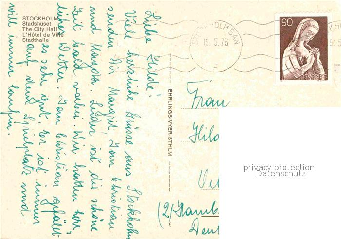 old postcard Stockholm Stadshuset am Abend postalisch gelaufen Erhaltung siehe scans [LiesaD40]