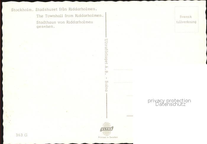 Stockholm Stadshuset fran Riddarholmen Rathaus Schwedische Flagge postalisch nicht gelaufen Erhaltung siehe scans