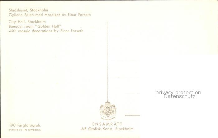 Stockholm Stadshuset Gyllene Salen postalisch nicht gelaufen Erhaltung siehe scans