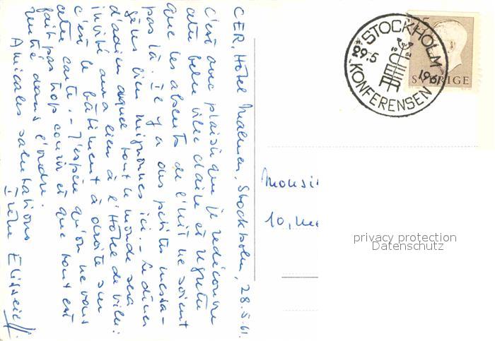 old postcard Stockholm Stadshuset och Vaesterbron i kvaellsbelysning postalisch gelaufen Erhaltung siehe scans [FriedD77]