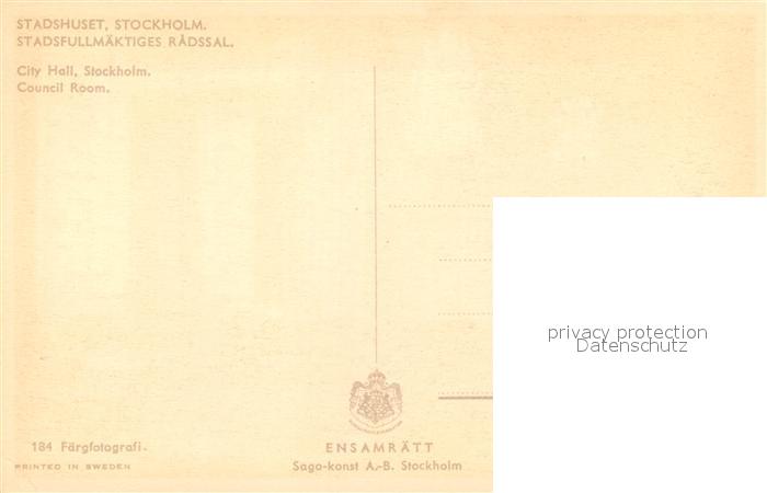 Stockholm Stadshuset Radssal postalisch nicht gelaufen Erhaltung siehe scans [LiesaD40]