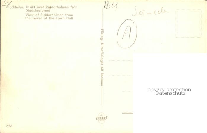 Stockholm Stadshustornet Kirchturm postalisch nicht gelaufen Erhaltung siehe scans