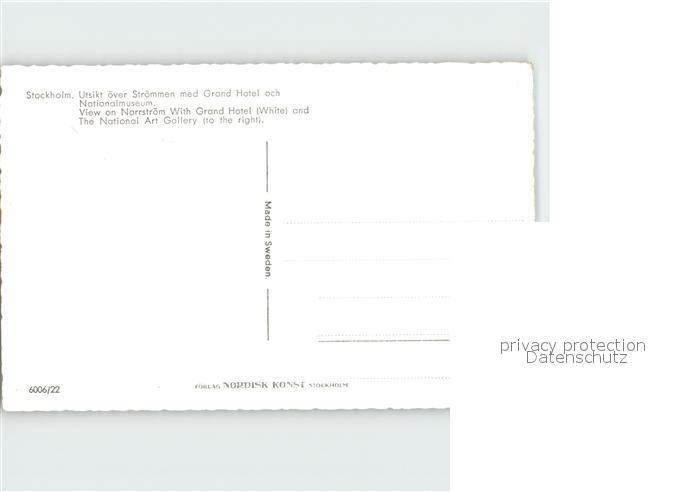 Stockholm Stroemmen med Grand Hotel och Nationalmuseum postalisch nicht gelaufen Erhaltung siehe scans