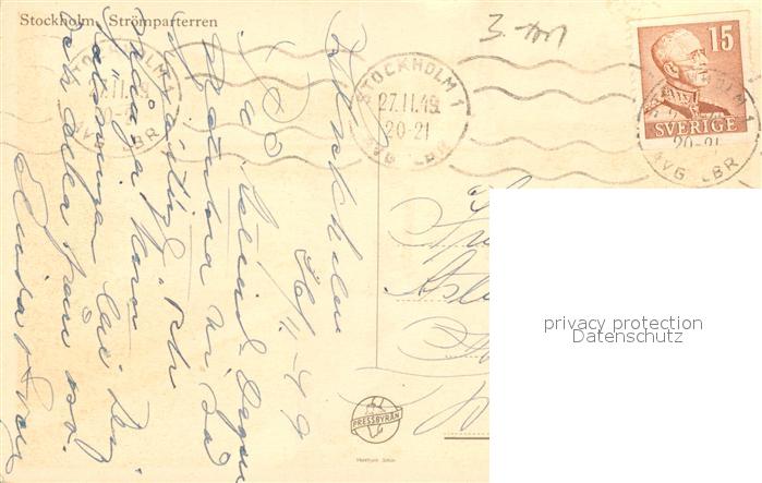 old postcard Stockholm Stroemparterren Denkmal postalisch gelaufen Erhaltung siehe scans [FriedD77]