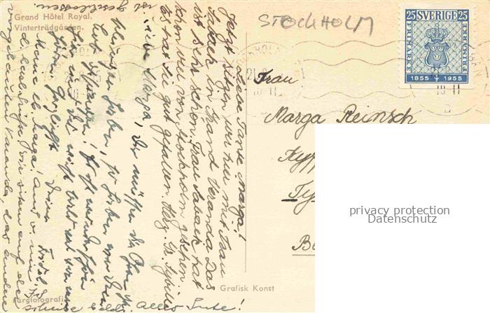 74125909 old postcard STOCKHOLM Sweden Grandhotel Royal Vintertraedgarden postalisch gelaufen Erhaltung siehe scans [WerneD78] KatCode: 11460