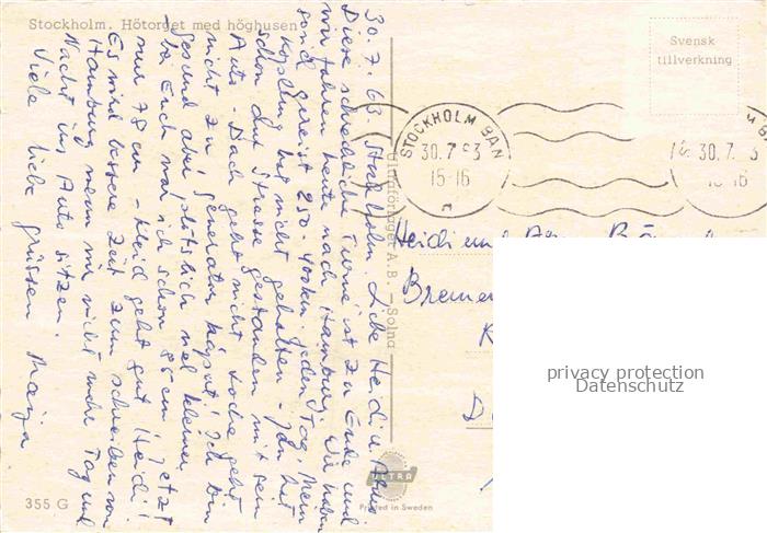 74148892 old postcard STOCKHOLM Sweden Hoetorget med hoeghusen postalisch gelaufen Erhaltung siehe scans [FriedD77] KatCode: 11460