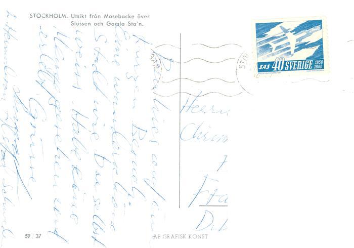 old postcard Stockholm Sweden Utsikt fran Mosebacke oever Slussen och Gamia Sta’n postalisch gelaufen Erhaltung siehe scans [FriedD77]