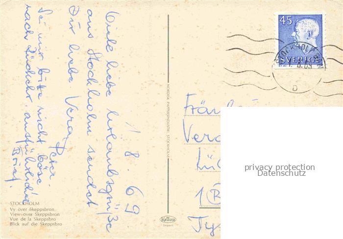 74156160 old postcard STOCKHOLM Sweden Vy oever Skeppsbron postalisch gelaufen Erhaltung siehe scans [FriedD77] KatCode: 11460