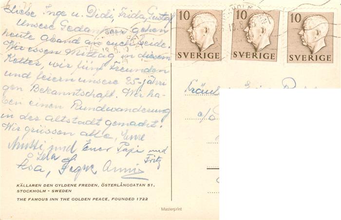 old postcard Stockholm The famous Inn The Golden Peace Restaurant postalisch gelaufen Erhaltung siehe scans [FriedD77]