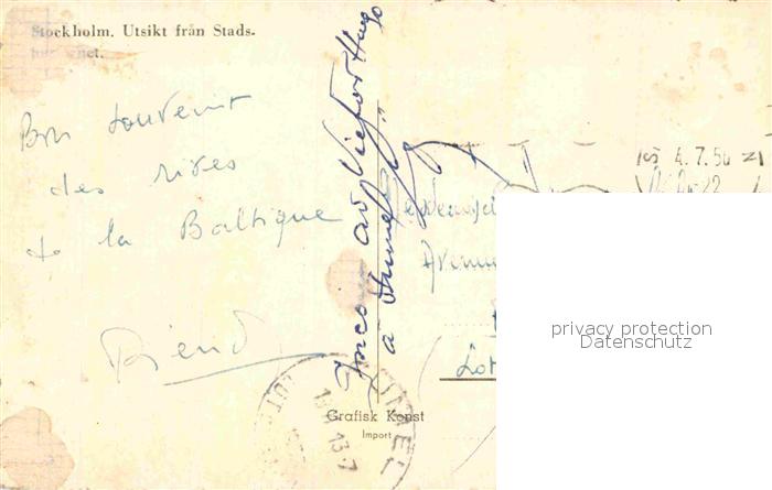 old postcard Stockholm Utsikt fran Stads postalisch gelaufen Erhaltung siehe scans [FriedD77]