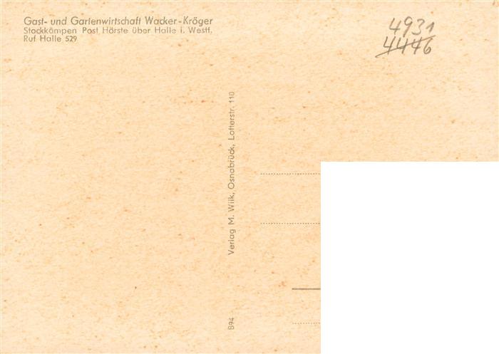 73864393 Stockkaempen Hoerste Halle Westfalen Gast- und Gartenwirtschaft Wacker-Kroeger postalisch nicht gelaufen Erhaltung siehe scans [FriedD77] KatCode: 11110005754012