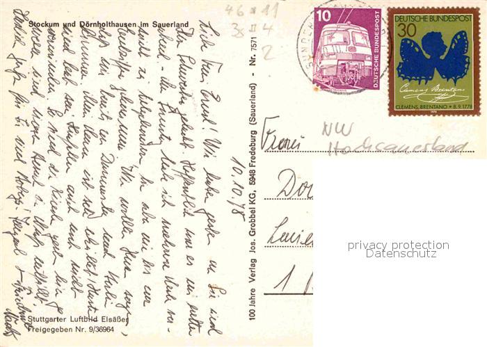 72907397 alte Postkarte Stockum Sauerland Fliegeraufnahme postalisch gelaufen Erhaltung siehe scans [AndreD76] KatCode: 11110005958044