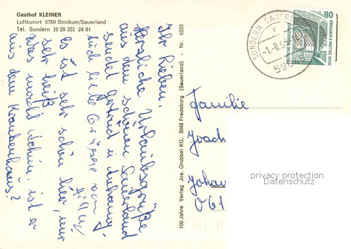 73646329 alte Postkarte Stockum Sauerland Gasthof Kleiner postalisch gelaufen Erhaltung siehe scans [FriedD77] KatCode: 11110005958044