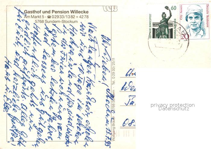 73542890 alte Postkarte Stockum Sauerland Gasthof Pension Willecke postalisch gelaufen Erhaltung siehe scans [FriedD77] KatCode: 11110005958044