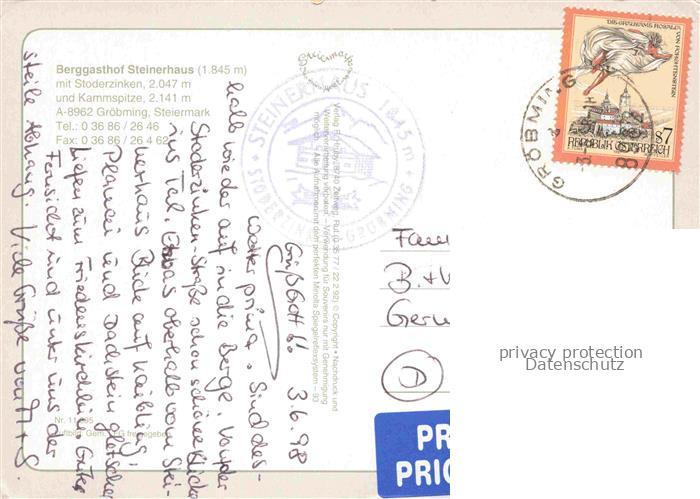 74044293 alte Postkarte Stoderzinken 2015m Groebming Steiermark AT Berggasthaus Steinerhaus postalisch gelaufen Erhaltung siehe scans [WerneD78] KatCode: 11390222061213