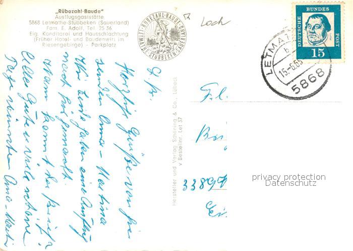 33153763 alte Postkarte Stoebbeken Letmathe R?bezahl Baude postalisch gelaufen Erhaltung siehe scans [KathaD81] KatCode: