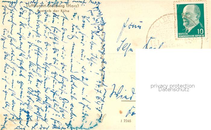 73750365 alte Postkarte Stolberg Harz Austrieb der Kuehe postalisch gelaufen Erhaltung siehe scans [WerneD78] KatCode: 11110015087410