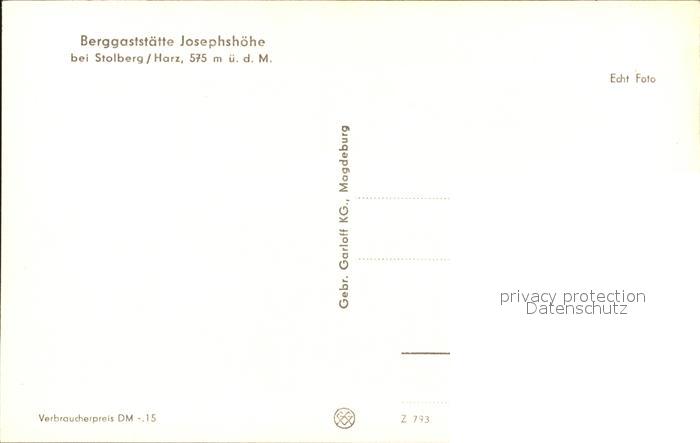 72017346 Stolberg Harz Berggaststaette Josephshoehe postalisch nicht gelaufen Erhaltung siehe scans KatCode: 11110015087410