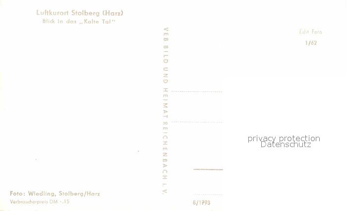 72728758 Stolberg Harz Blick in das Kalte Tal postalisch nicht gelaufen Erhaltung siehe scans [FriedD77] KatCode: 11110015087410