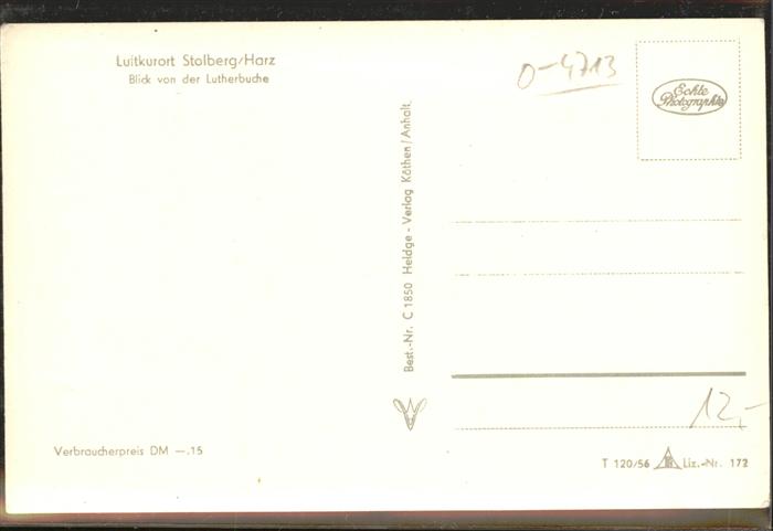 41417638 Stolberg Harz Blick von der Lutherbuche Kirche Schloss Luftkurort postalisch nicht gelaufen Erhaltung siehe scans KatCode: 11110015087410