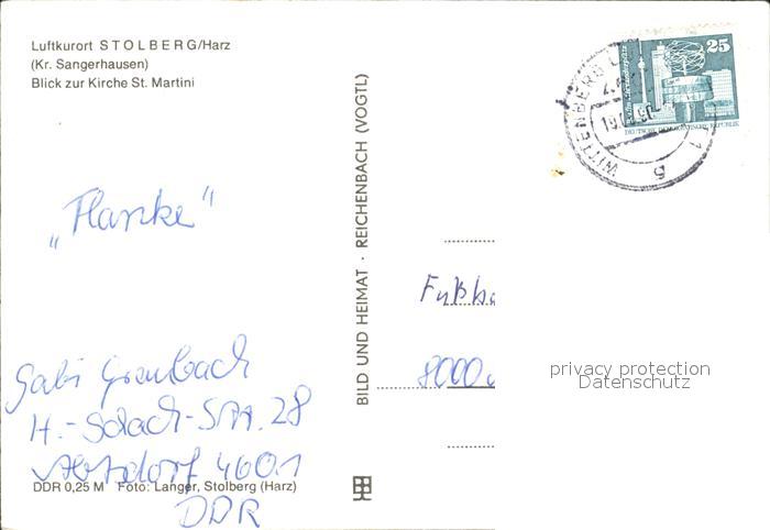 72131670 alte Postkarte Stolberg Harz Blick zur Kirche Sankt Martini postalisch gelaufen Erhaltung siehe scans KatCode: 11110015087410