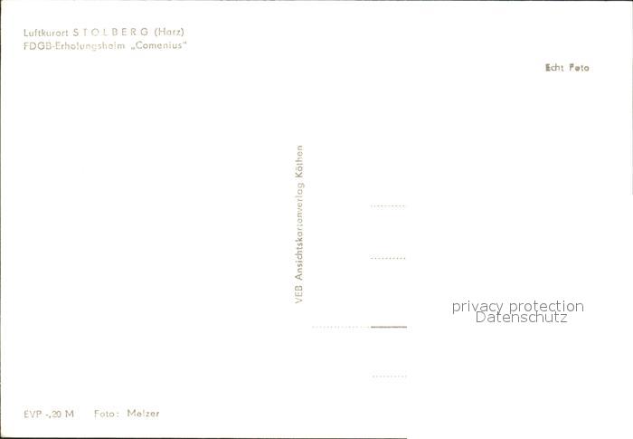 72273336 Stolberg Harz FDGB Erholungsheim Comenius postalisch nicht gelaufen Erhaltung siehe scans KatCode: 11110015087410