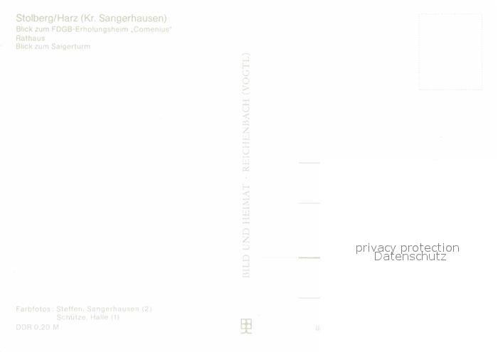 72829142 Stolberg Harz FDGB Erholungsheim Comenius Rathaus Saigerturm postalisch nicht gelaufen Erhaltung siehe scans [FriedD77] KatCode: 11110015087410