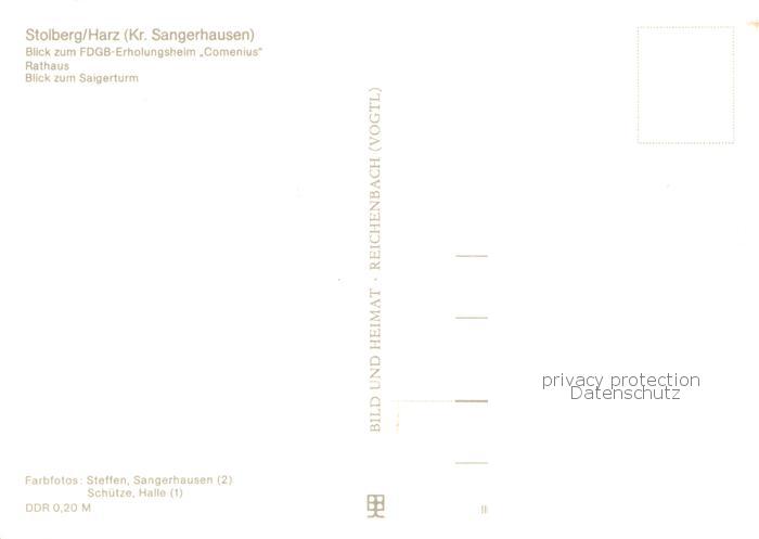 73783015 Stolberg Harz FDGB Erholungsheim Comenius Rathaus Saigerturm postalisch nicht gelaufen Erhaltung siehe scans [WerneD78] KatCode: 11110015087410