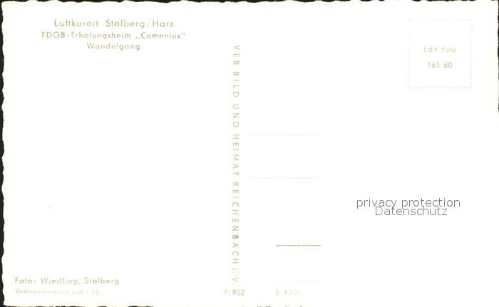 72361167 Stolberg Harz FDGB-Erholungsheim Comenius Waldelgang postalisch nicht gelaufen Erhaltung siehe scans KatCode: 11110015087410