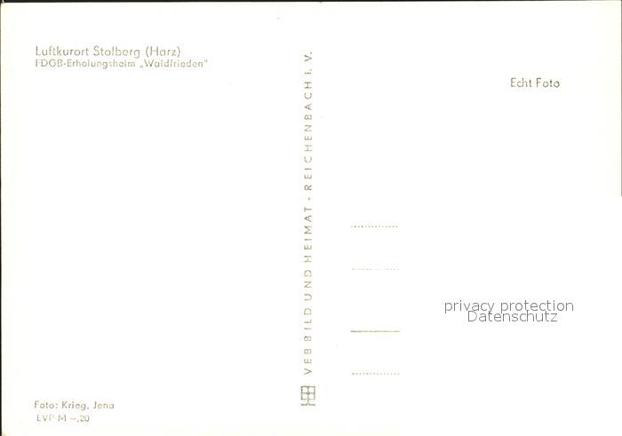 72017762 Stolberg Harz FDGB Erholungsheim Waldfrieden postalisch nicht gelaufen Erhaltung siehe scans KatCode: 11110015087410