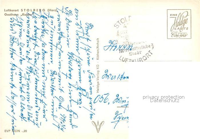 73005364 alte Postkarte Stolberg Harz Gasthaus Kupfer postalisch gelaufen Erhaltung siehe scans [KathaD81] KatCode: 11110015087410