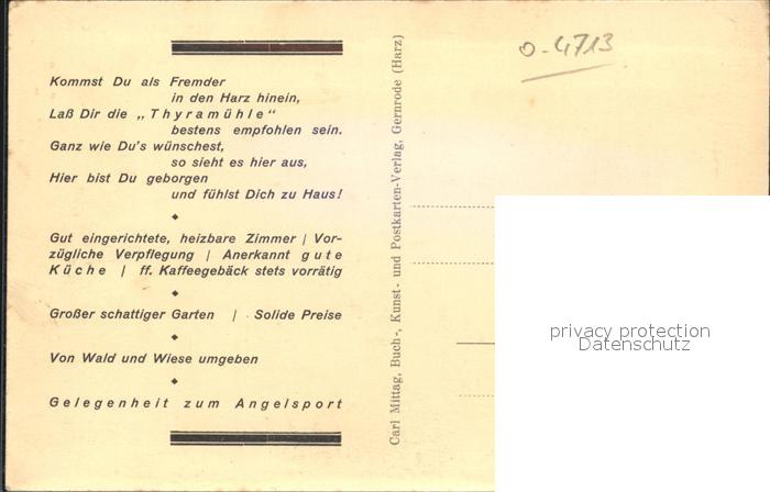 42417789 Stolberg Harz Gasthaus Pension Thyratal Thyram?hle Gedicht postalisch nicht gelaufen Erhaltung siehe scans KatCode: 11110015087410