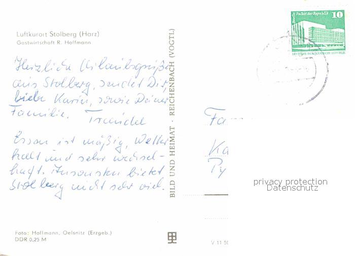 72676212 alte Postkarte Stolberg Harz Gastwirtschaft Holtmann Fachwerkhaus Luftkurort Trabbi postalisch gelaufen Erhaltung siehe scans [FriedD77] KatCode: 11110015087410