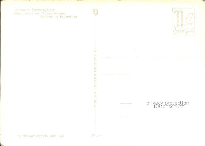 72010668 Stolberg Harz Geburtshaus von Thomas Muentzer postalisch nicht gelaufen KatCode: 11110015087410