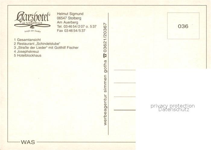 73646702 Stolberg Harz Harzhotel im Schindelbruch Restaurant Schindelstube Strasse der Lieder Josephskreuz Hotelblockhaus postalisch nicht gelaufen Erhaltung siehe scans [WerneD78] KatCode: 11110015087410