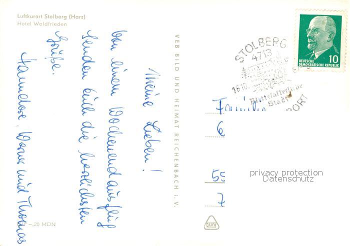 73038477 alte Postkarte Stolberg Harz Hotel Waldfrieden postalisch gelaufen Erhaltung siehe scans [KathaD81] KatCode: 11110015087410