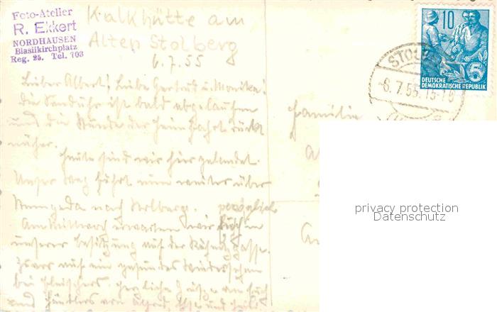 72634544 alte Postkarte Stolberg Harz Kalkhuette postalisch gelaufen Erhaltung siehe scans [KathaD79] KatCode: 11110015087410