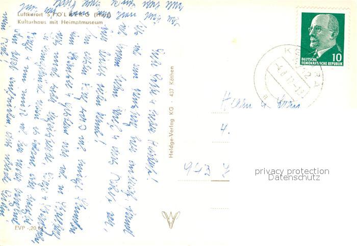 73134978 alte Postkarte Stolberg Harz Kulturhaus mit Heimatmuseum Fachwerkhaeuser postalisch gelaufen Erhaltung siehe scans [FriedD77] KatCode: 11110015087410