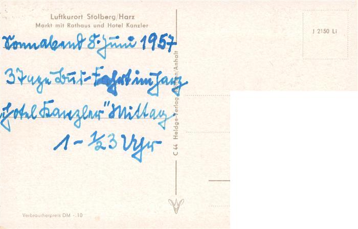 73898459 Stolberg Harz Markt mit Rathaus und Hotel Kanzler Luftkurort postalisch nicht gelaufen Erhaltung siehe scans [FriedD77] KatCode: 11110015087410